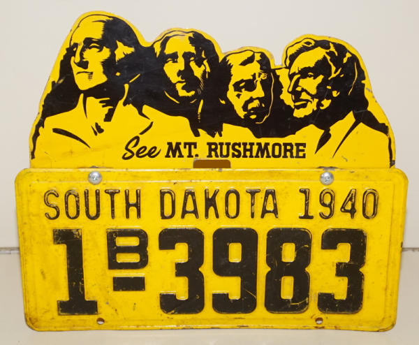SD 1940 Plate w/ Original "See Mt. Rushmore" License Plate Topper