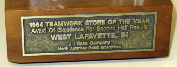 Heavy lucite Award on wood base w/ metal plaque, about 6"x6"x6" overall; has some scuffs