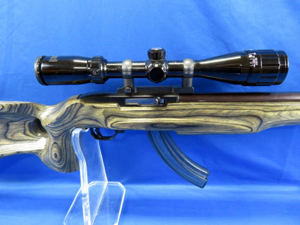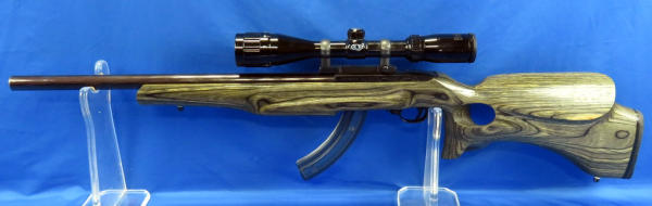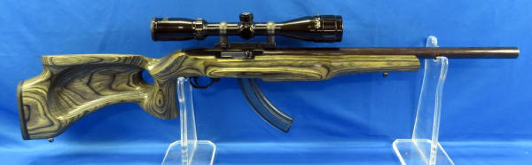 20" heavy Twisted Hammer Forged barrel; custom wood grain stock w/thumb hole grip; banana clip; Bushnell 4x-12x40 scope; nice set-up; SN#245-95609