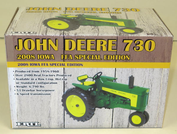 Kirkhart Farm Toy Auction 15 Ohio Street, Wakonda, SD 57073 Super clean and quality collection! All Brands! All from the Arlen Kirkhart Collection of Manson, IA. Catalog | Terms of Auction | Print Catalog Catalog | Terms Back to Catalog #60 – JD 730 nf '08 IA FFA NIB More Details NIB Location: 15 Ohio Street, Wakonda SD, 57073 High Bid: $120.00 – jd4010 bidding history Bidding has closed on this lot Back to Catalog