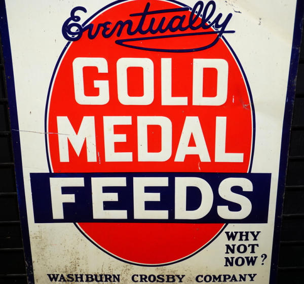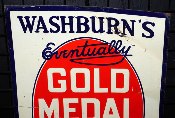 36"x23.5", good color, has some speckled rust and a little bent on the top right corner, rates 7.5 condition