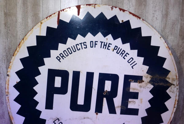 72" across, some small chips and wear, one side has "Country" painted on it, reverse side needs a good cleaning, but looks to be the same condition with a few chips; pickup in Bismarck Only