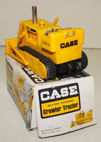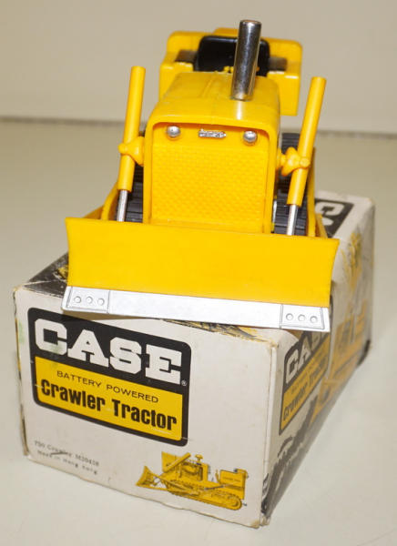 6" long, pretty nice original crawler, battery box has the cover and is clean; toy has some light discoloration from age; original two piece box has quite a bit of wear, but pretty scarce box, rates 7.5 condition