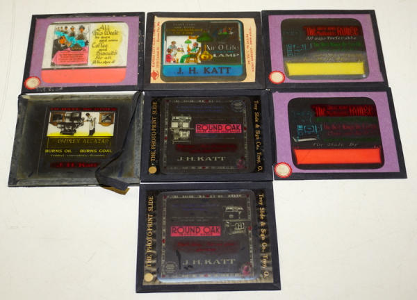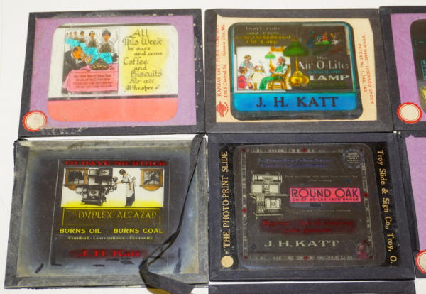 each 3.5"x4", most are nice with great graphics, 5 of them advertise Stoves including Round Oak, all from JH KATT, I believe Rock Rapids, IA, sells 7x the money