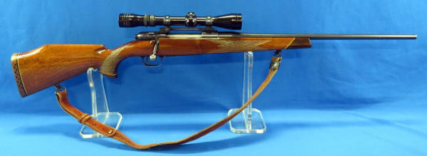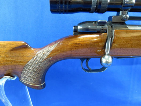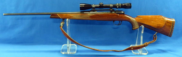 this may be possibly the smooth action I've ever felt on a bolt-action rifle! Has a custom engraved magazine plate; Redfield 3x-9x scope; 22" BBL; very nice wood w/cherry or rosewood tip; leather sling; great looking firearm; made in Germany; SN#82447