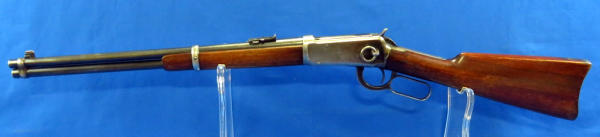 20" round BBL; action is stiff and needs to be cleaned; wood is solid with some field marks; bluing is very thin on receiver; flip up rear sight; SN#1015622