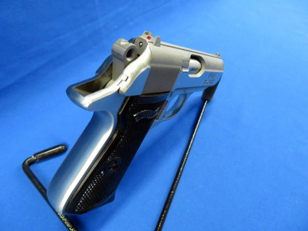 3.25" Stainless barrel; two magazines; single red dot front & rear sight; hard plastic checkered factory grips; factory hard padded case; made in USA by S&W; SN#0137BAW