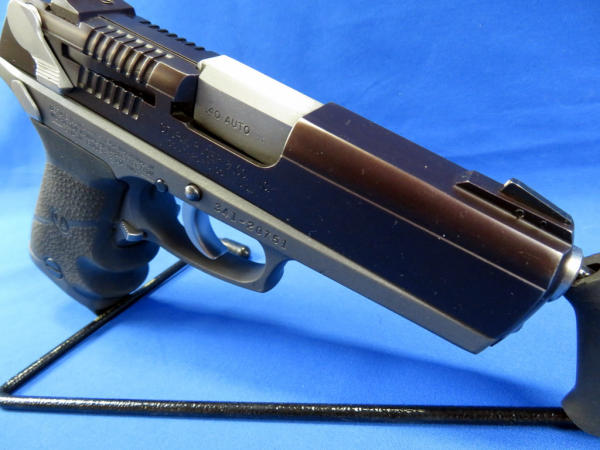 4.25" stainless barrel; two-tone look with darker almost purple look slide; night sights; two magazines; rubber grips; made in USA; SN#341-20751
