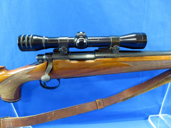 24" BBL; smooth action; leather sling; Redfield 4x Frontier scope; has some field marks to wood, nice gloss; bluing loss around the muzzle; SN#6704484