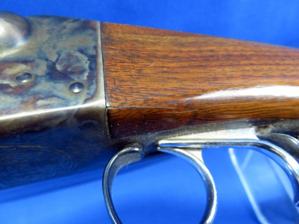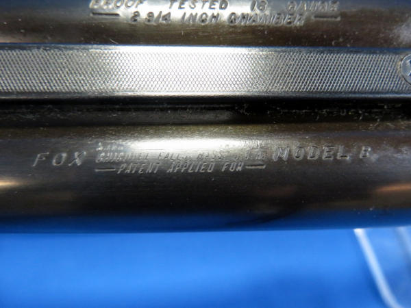 28" VR-BBLs; easy break action; case hardened receiver; wood is nice, has a 1" crack above trigger on right side; good bluing; 2.75" chamber; Left - FC & Right-MC; not your normal Fox engraving on bottom of receiver, has a Duck scene; two triggers; no SN#