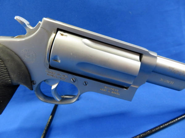 3" Stainless barrel; factory rubber grips; front red fiber optic sight; has some use but overall nice shape; canvas holster; made in Brazil; 5-shot swing-out cylinder; SN#DN125600