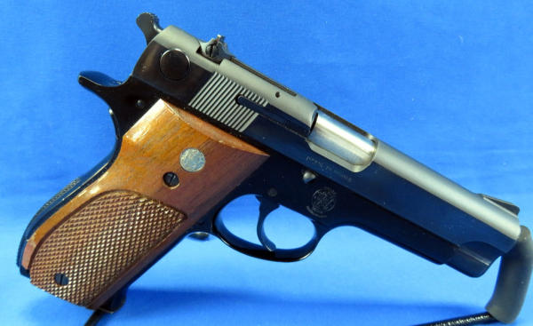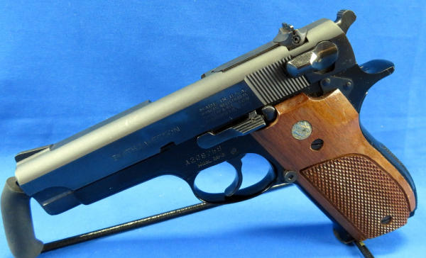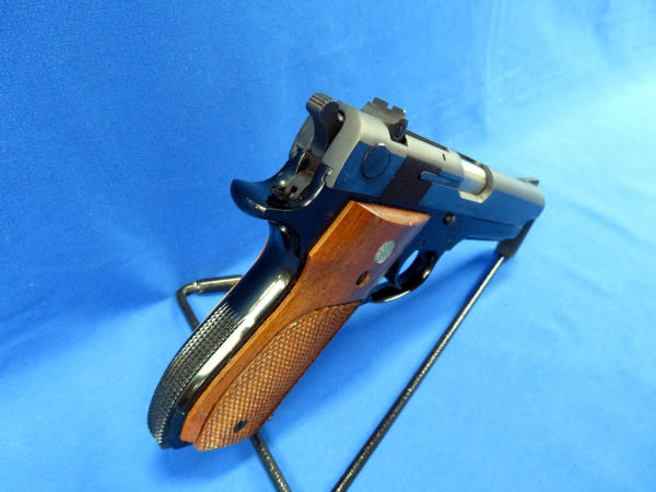 4" BBL; wood checkered grips; nice bluing; one magazine; like new condition; made in USA; SN#A208759