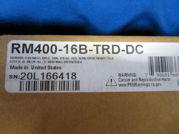 mint & unfired; original box; 16" stainless barrel w/2" flash hider; one magazine; distressed green frame; extendable stock; pistol grip; Sig Sauer site; SN#20L166418