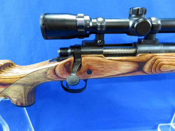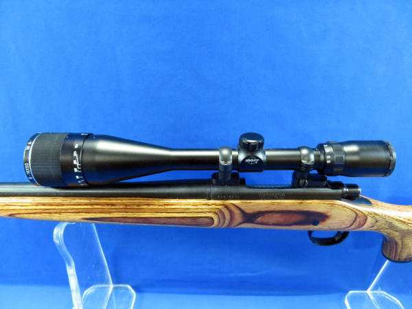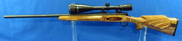 26" heavy varmint BBL; smooth action; wood grain laminate stock; Swift 6-18x50 scope; thick forearm; overall like new and great looking gun; SN#E6610874