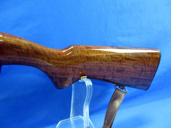 gun has been restored; wood has been very nicely refinished; receiver has been glossed and is OK, needs to be sanded down; bluing on barrel is nice; 23" BBL; smooth action; leather sling; no SN#