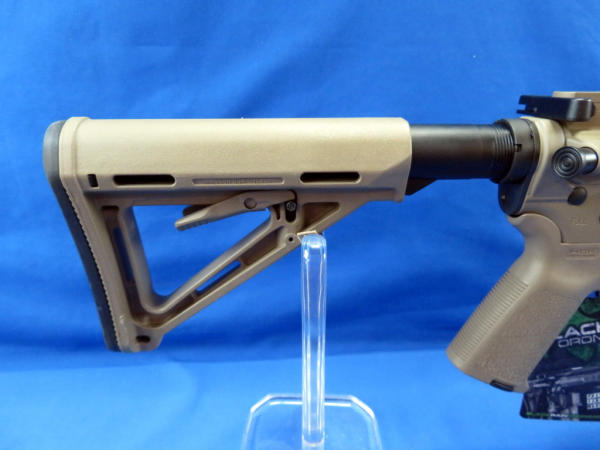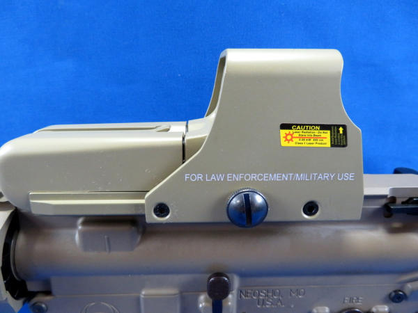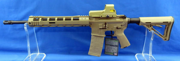 originally cataloged as .5.56, but is a .223 Wylde; mint & unfired; desert brown color frame; 16" BBL w/2" flash hider; extendable stock; pistol grip; one magazine; has factory padded case; Military/Police site; SN#SM069760