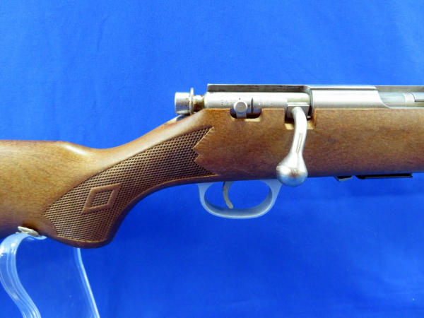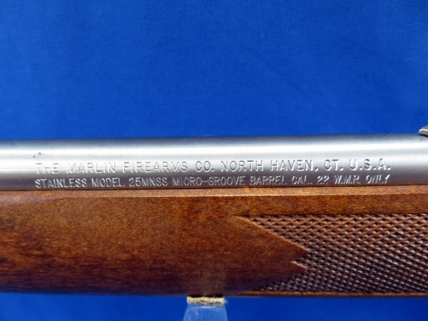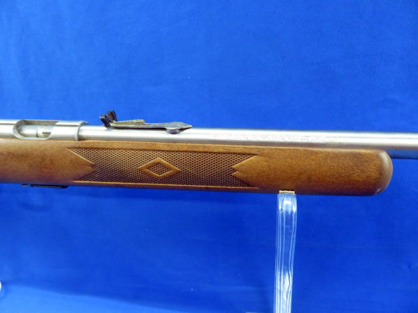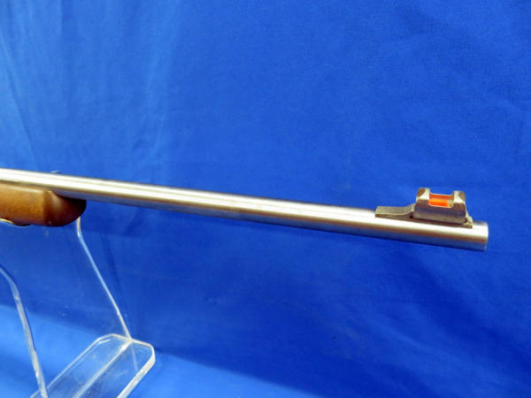 22" Stainless Barrel; wood very nice w/a couple very minor marks on left side; bright orange front site; smooth action; removable magazine; has DU coin in right side of stock; SN#03399895