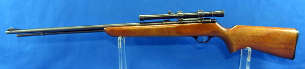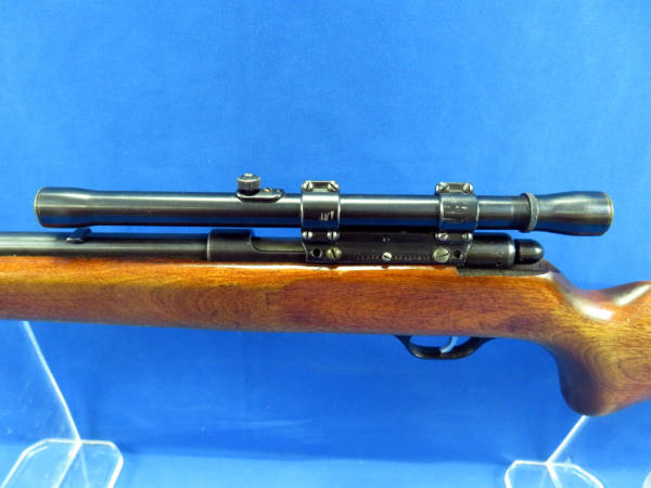 24" BBL; smooth action; wood overall is very nice and solid w/nice finish; some bluing spot loss on barrel; Weaver J4 Scope is clear; no SN#