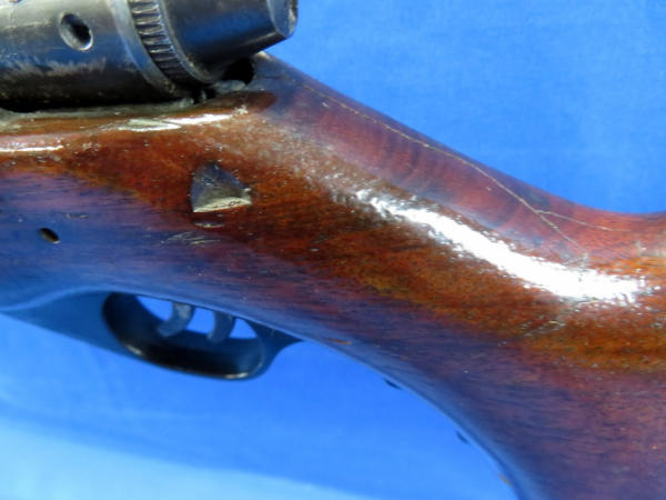 20" BBL; stock has been repaired behind trigger on left side; receiver tube in stock; has some field marks; bluing thin on barrel; no SN#