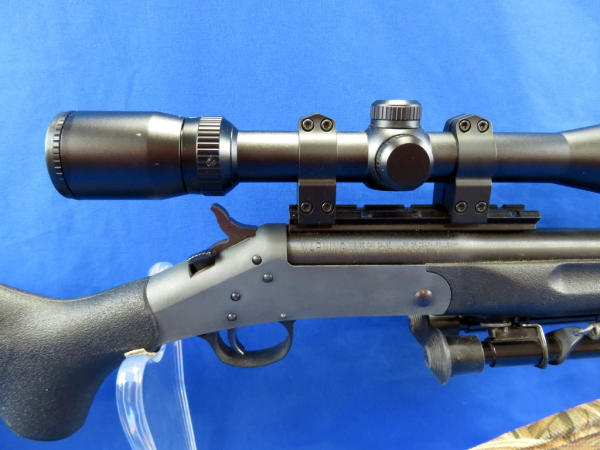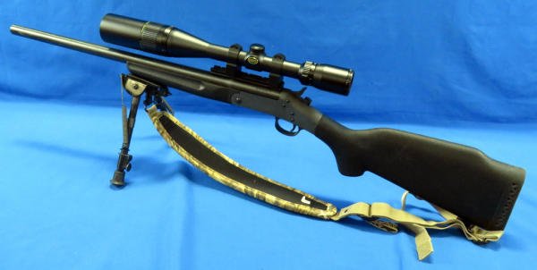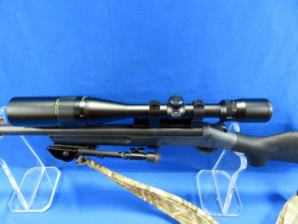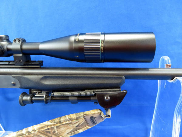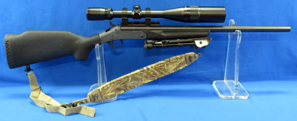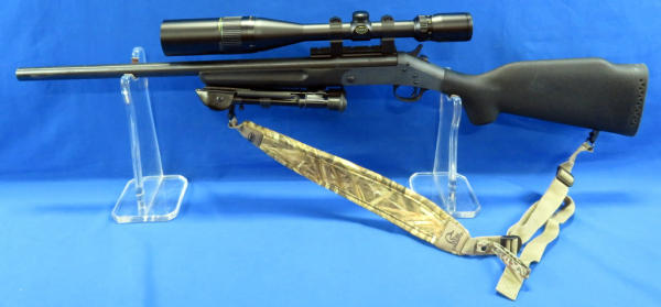 like new condition; easy break action; 22" BBL; black synthetic stock; sling; Scheels Hunter Ser. 4.5-14x42mm scope w/sun shade; mounted bi-pod; overall very nice; SN#NS234347