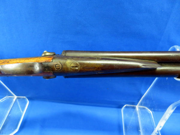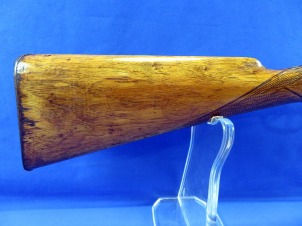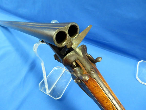 30" BBLs; loose break action, lever release on forearm is lose and wants to open easily; two triggers; both mechs work; wood is solid; both CC: no SN#