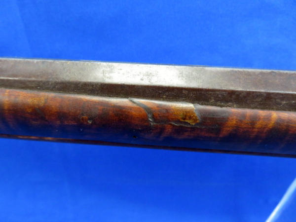 believe old original; 41" Oct. BBL; wood has been damaged; mech does not work properly; has a maker mark on side of but worn and can't read; No FFL transfer needed