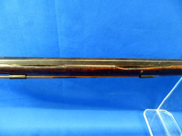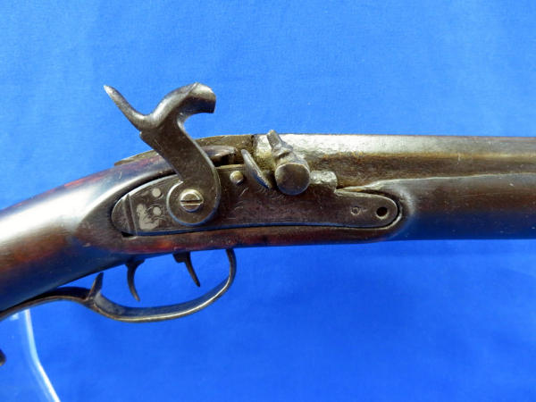 believe old original; 46" Oct. BBL; wood has been damaged; mech does not work; has a maker mark on side but worn and can't read; No FFL transfer needed