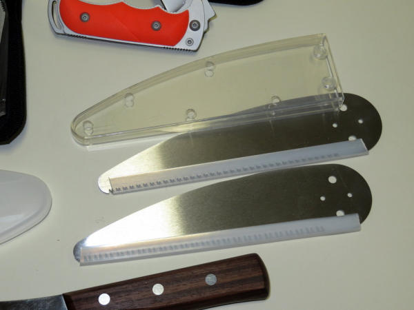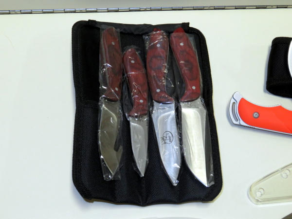 Includes a RMEF Browning Hunting & Skinning (new); RMEF Gerber Single blade folding (new); Victorinox 40019 Flexible Fillet w/plastic sheath; set of saw blades in sheath; all new, sell for one money