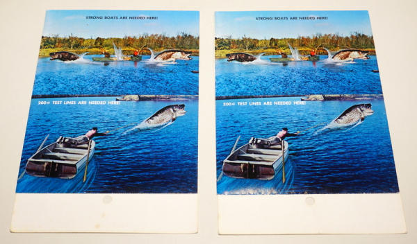 12 cards total; all depict funny fishing scenes; sell for one money