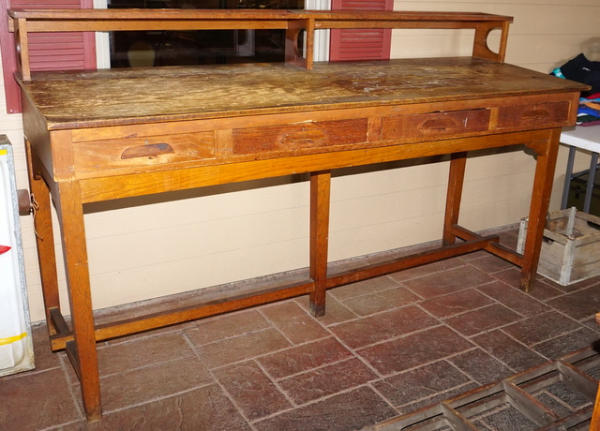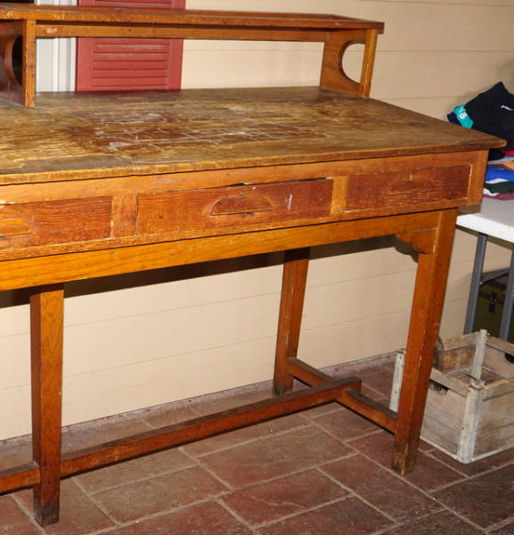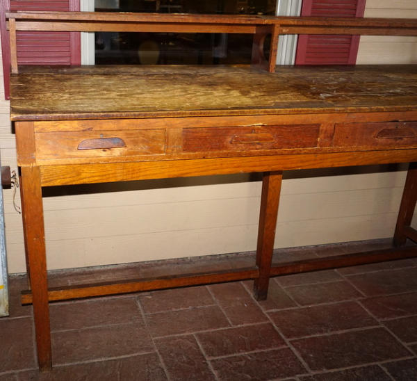 8' long, original, writing surface has really heavy wear, rest looks good, neat piece