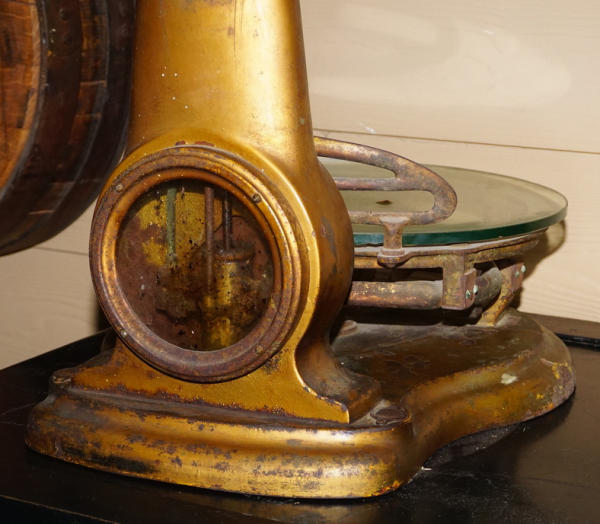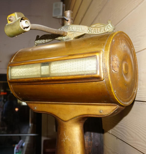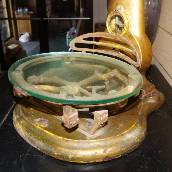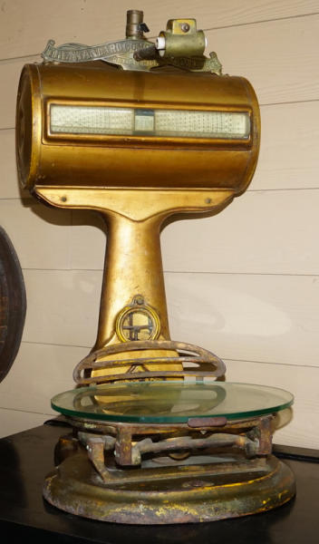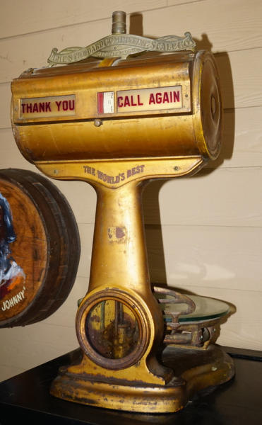 34" tall, very heavy, really unique with built in lights, nice original with normal wear