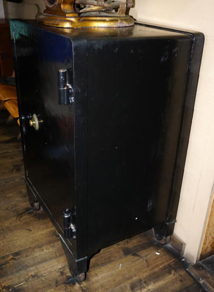 25"x33"x50", old repaint, very heavy, bring plenty of help; Large item load out, there will be a forklift onsite to help load