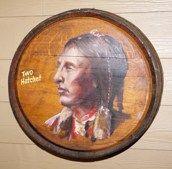 each 22" across, original barrel ends hand painted by Greg Preheim, sells as a set
