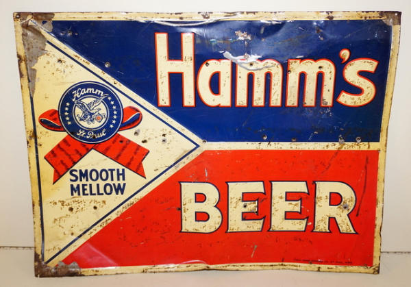 approx. 18"x24", several extra nail holes and heavy wear, not the best, but an early and scarce Hamm's sign
