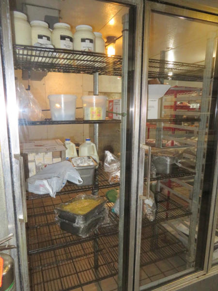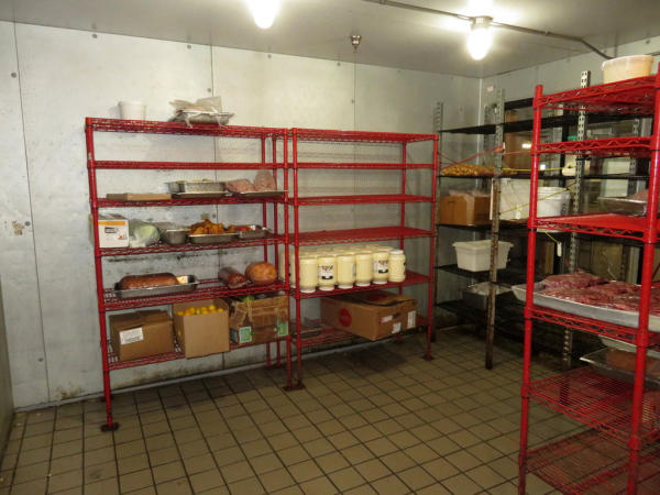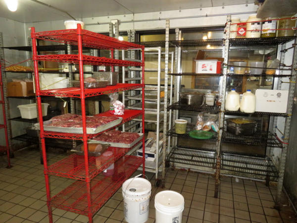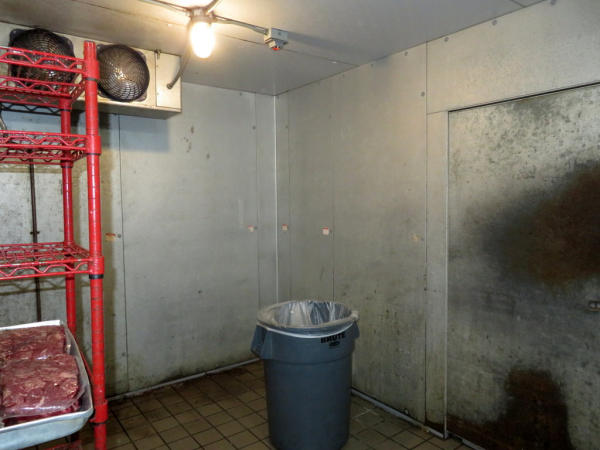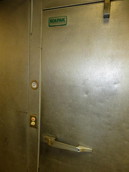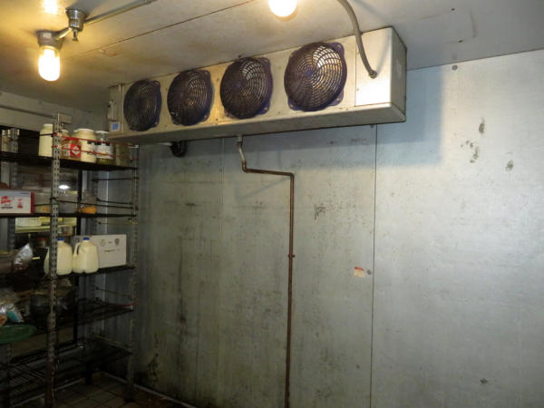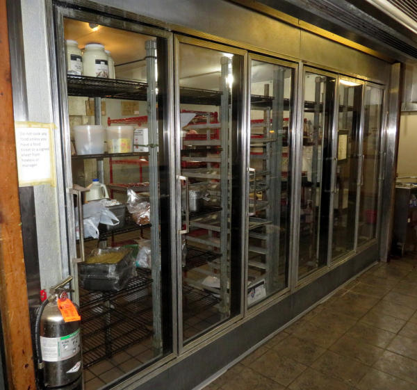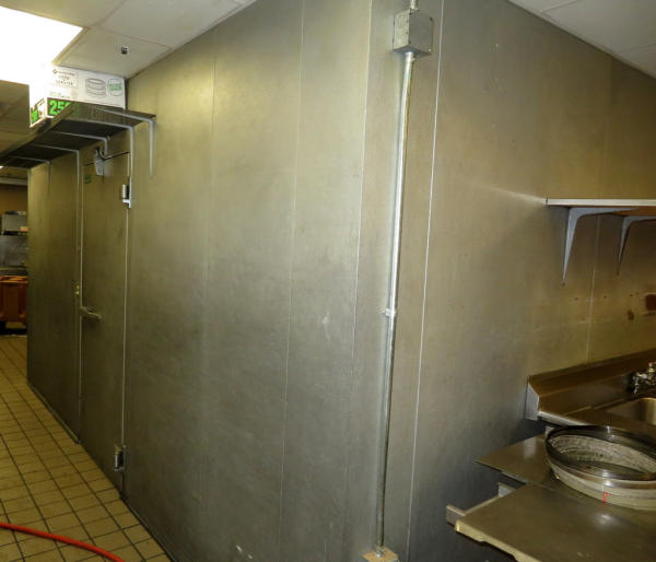 14'x16'x8'; glass front doors; includes wire racking; works very well; buyer responsible for removal; compressor sits on top of the unit inside the building above the false ceiling; must be out by July 1st.