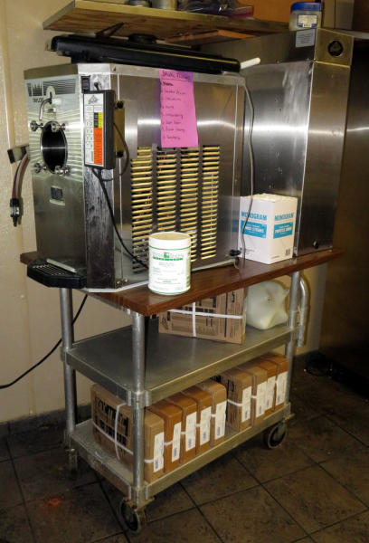 main machine 22"x30"x28"; Flavor burst is 10"x24"x32"mdl.430-12; works great, Jack fed the Girard auction crew several shakes during the cataloging process! Includes several boxes of flavors; comes all as one shot with the cart and all! New compressor 2 years ago