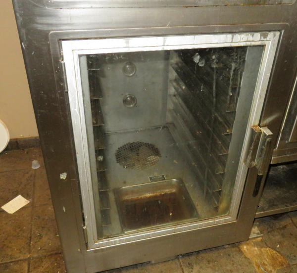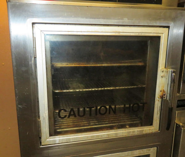 top is circulating air oven; bottom is bread proofer; could use a cleaning; missing one knob on the controls; works; 30"x72"x36"