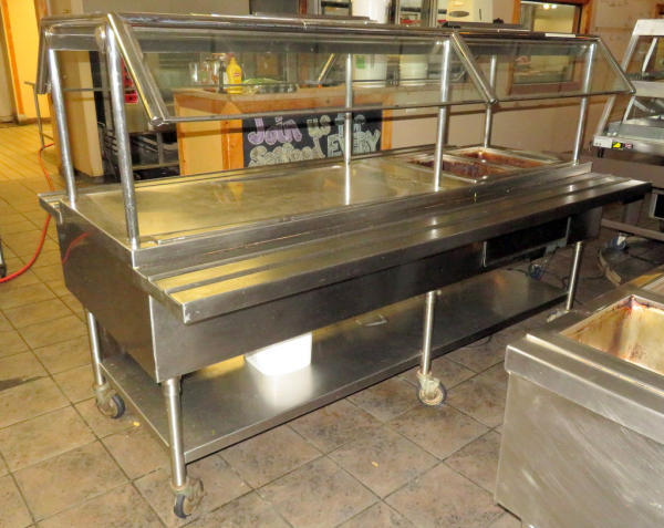 has 2-hot compartments & one large cold compartment; 50"x90"x60"; double sided serving