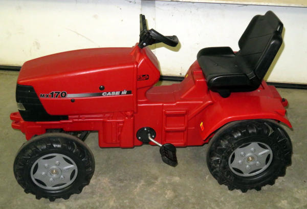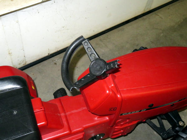 all plastic; broken steering wheel; has play wear; good one for the kids