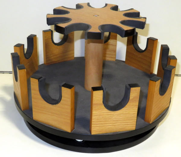 believe for handguns, possibly good hold scopes; holds 9; 13" dia.; 8" tall