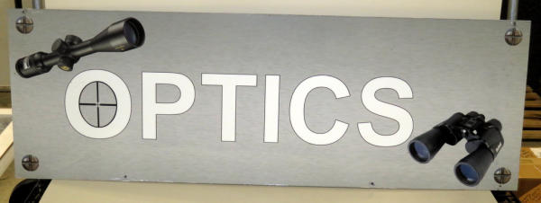 printed on aluminum core board; 36"x12"; back says "OPTICS";