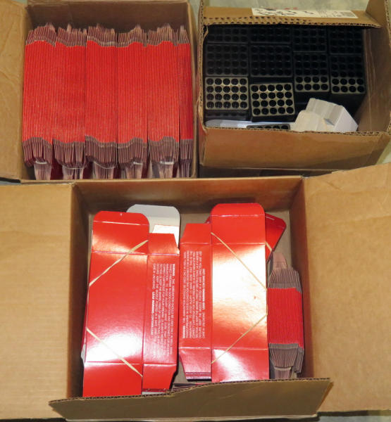 includes 135-#4 red boxes; 95-#20, 93-#50; and 62 plastic holders for .380 & 9mm; sell for one money