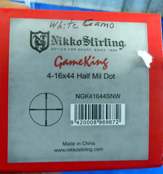 NIB; 22" BBL; Nikko Stirling GameKing 4-16x44 Half Mil Dot Scope; scope box; SN#B702302