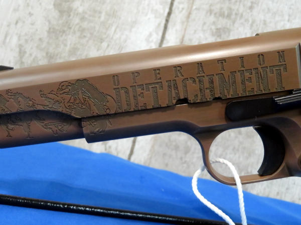 NIB; 5" BBL; factory engraved slide and wood grips; nice; SN#A0A53910