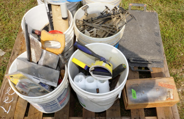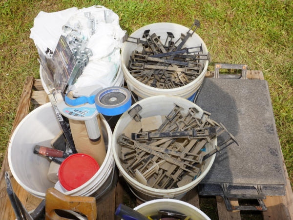 rollers, clips, taping knives, lite-forms, framing nails; all to go
