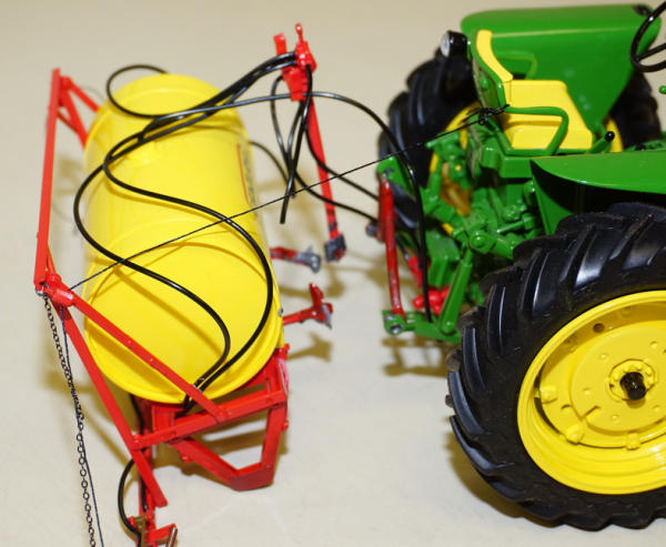 High-Detail tractor, Sprayer is a Spec Cast that was custom built into a 3pt, the 3pt mounts on the sprayer are broken, were repaired once and need to be done again, a little TLC needed, but a neat toy