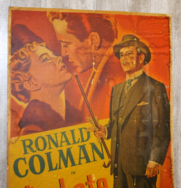 78"x41", mounted to a foam board, heavy water damage and discoloration, poor condition; no shipping