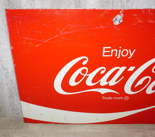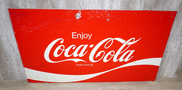 30"x54", heavy metal, has heavy scuffs and some dings, probably a panel off a cooler, 1980's era I'd guess