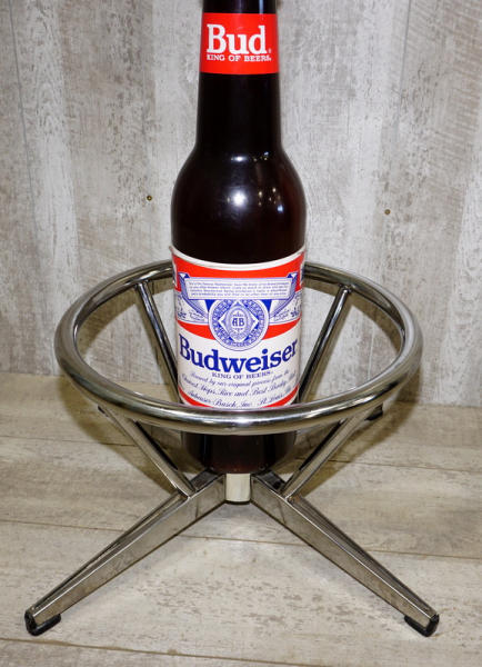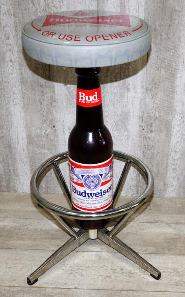 31" tall, padded seat, plastic bottle over the stand, some general wear from use, but overall pretty good condition, neat piece