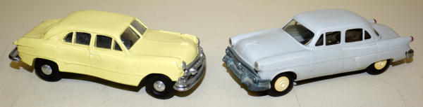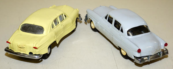 Yellow one has been poorly repainted and a warped; Grey one has some cracks on the back bumper, all to go for one bid